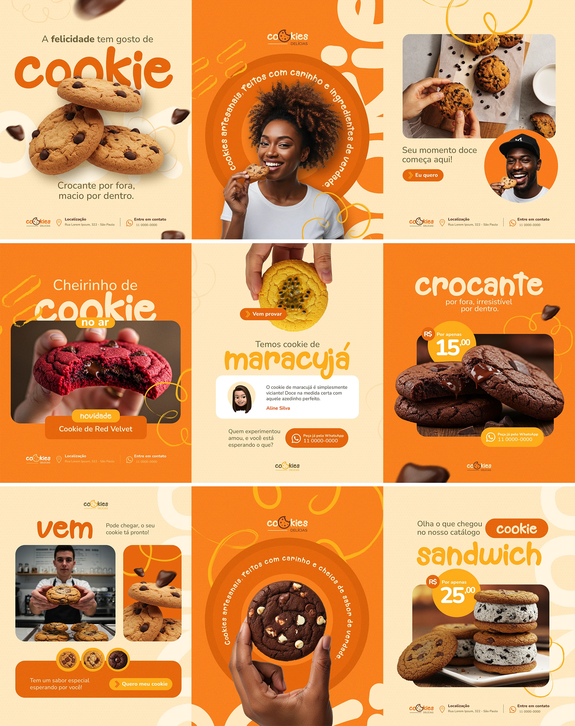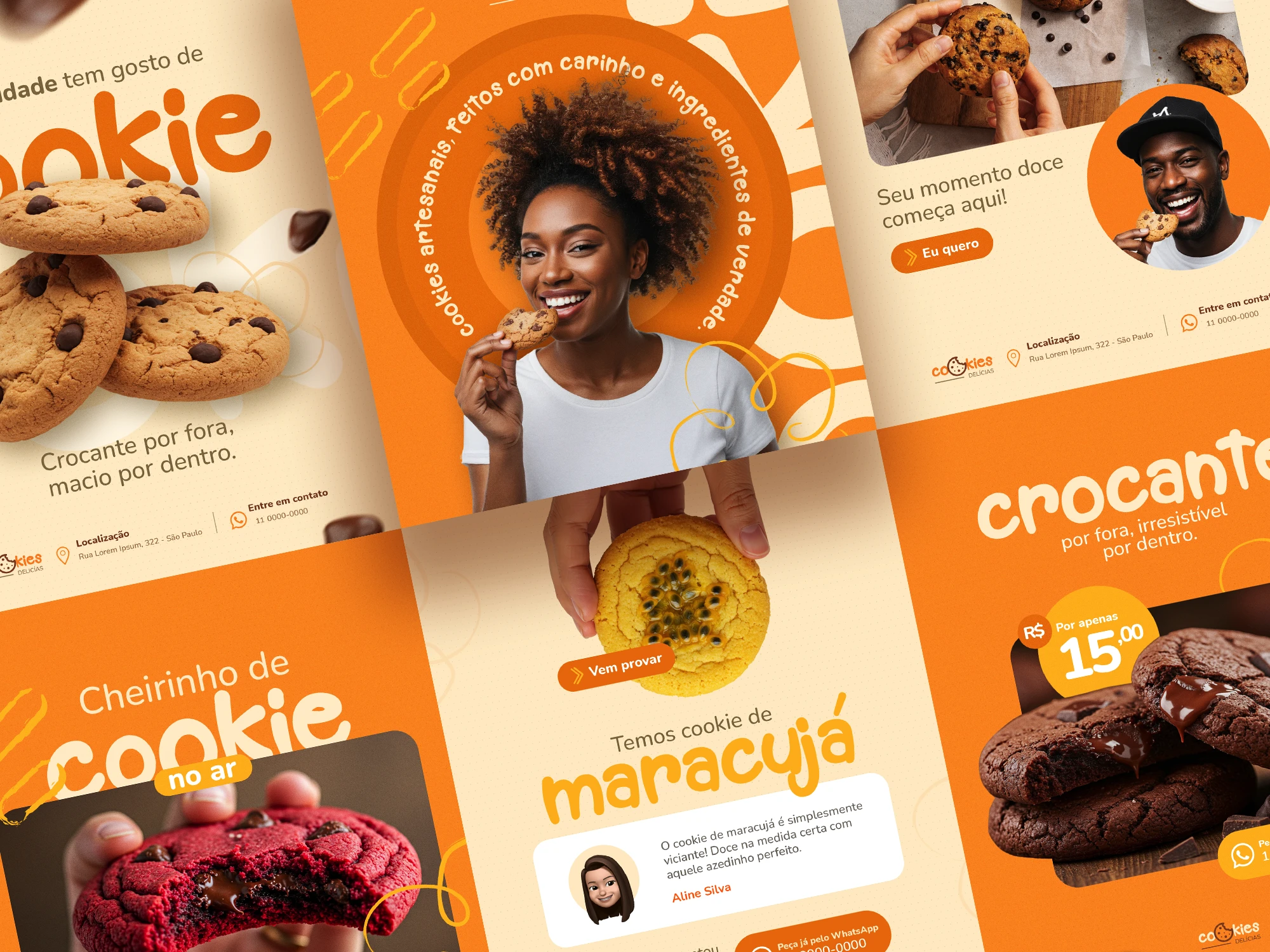 O projeto “Cookies Delícia” teve como objetivo traduzir a essência caseira e acolhedora da marca em uma identidade visual doce e marcante. Com foco em um público jovem-adulto, o desafio foi criar um visual que unisse o artesanal com o apetite visual de uma confeitaria moderna. Desenvolvi toda a identidade visual da marca, incluindo logotipo, paleta de cores, embalagens, peças para redes sociais e direção de arte fotográfica. O resultado é uma marca que desperta desejo à primeira vista e se destaca no mercado local, aumentando o engajamento online e as encomendas.